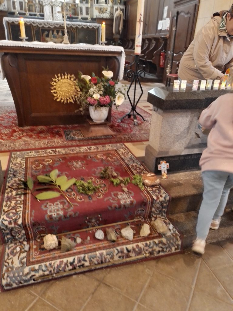 L’enseignante a retracé la semaine sainte . Pour la fête des rameaux des enfants ont apporté des rameaux, pour le jeudi Saint du pain, pour le vendredi Saint une croix, pour le samedi Saint des pierres et pour le dimanche de Pâques des lumières.