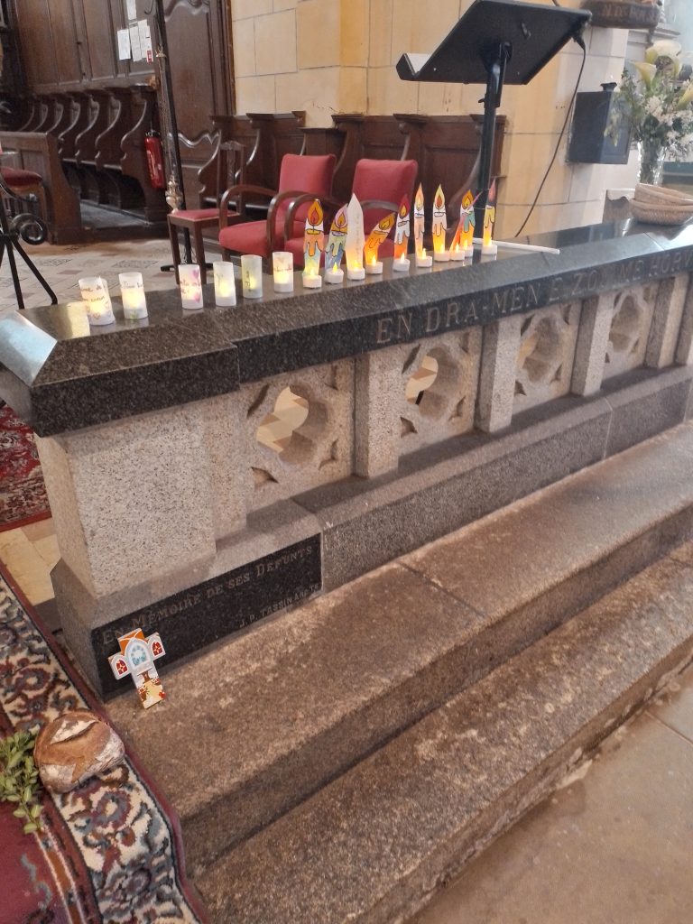 Le jeudi 9 avril, les enfants de l’école de Kergrist se sont retrouvés à l’église pour célébrer Pâques. Ils ont débuté la célébration par le psaume « Proclamer que le Seigneur est bon » .