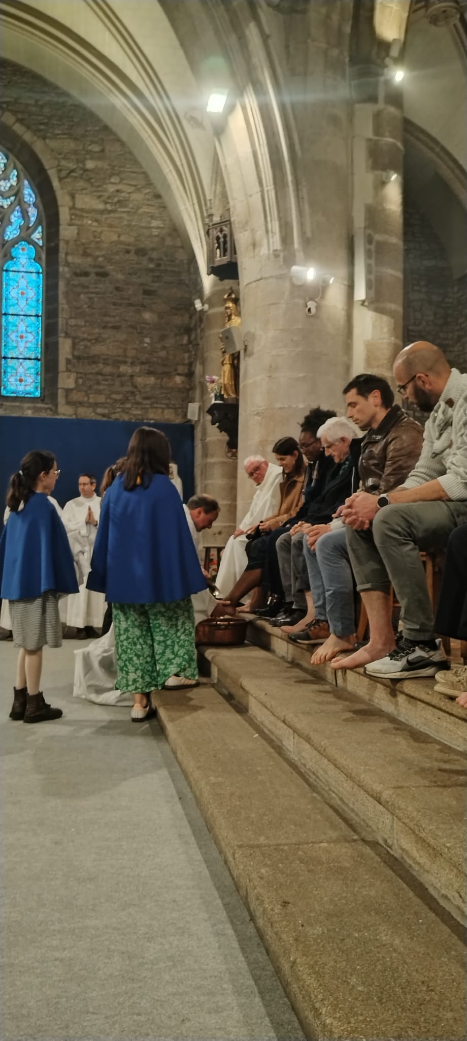 Le lendemain, à la Vigile Pascale, la Messe entamée à la bougie allait voir également le baptême de 6 adultes, dont plusieurs par immersion complète dans un bassin préparé spécifiquement pour l’occasion. La Vigile Pascale a également été l’occasion d’accueillir de nouveaux confirmants dans notre Eglise, ainsi que plusieurs Premières Communions de lycéens et d’adultes. Enfin, la Messe de la Résurrection du Christ se tint à la Basilique Notre Dame de Joie, mais également à Kergrist et à Saint Thuriau.